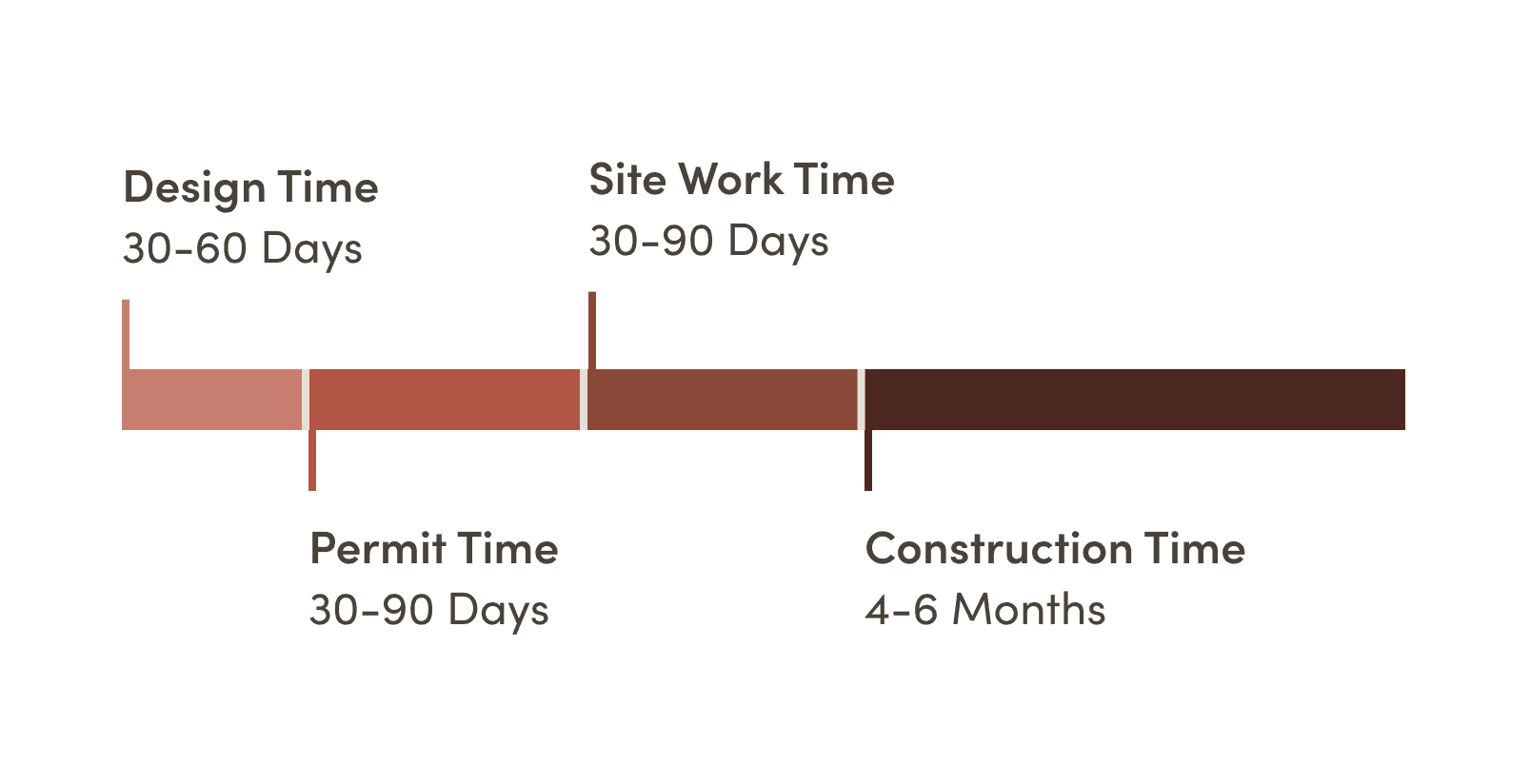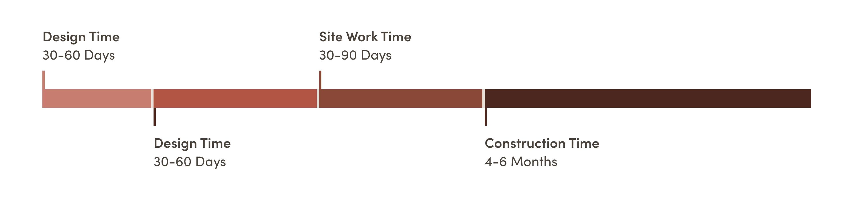 Construction begins with foundation work once site work is complete. Build timelines vary by location, but we work diligently to expedite progress while minimizing property disruption. From construction start, expect your accessory unit to reach greyshell completion within 3-5 months, with final finishes bringing your custom ADU to move-in ready condition within 6 months total.