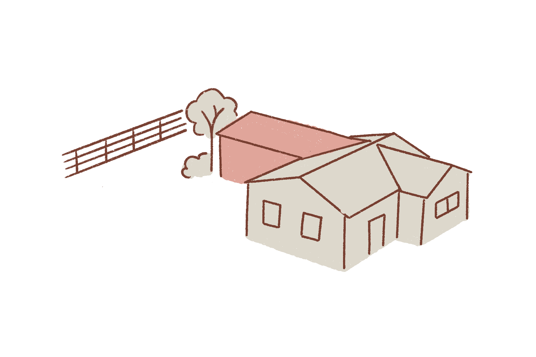 Separation between the primary building and additional unit, ideal for larger lots with more open space available.