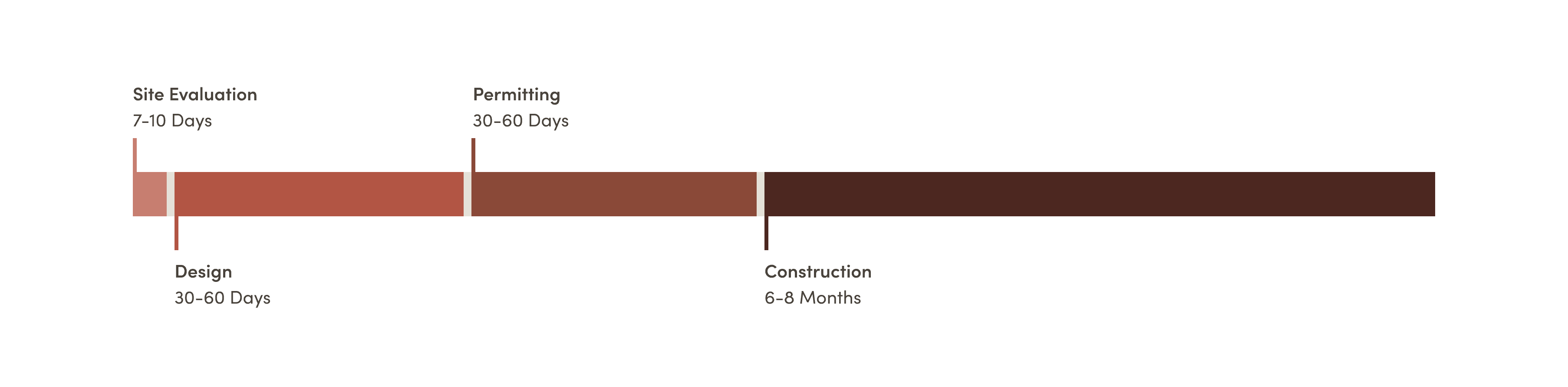 Construction begins with foundation work once site work is complete. Build timelines vary by location, but we work diligently to expedite progress while minimizing property disruption. From construction start, expect your accessory unit to reach greyshell completion within 3-5 months, with final finishes bringing your custom ADU to move-in ready condition within 6 months total.
